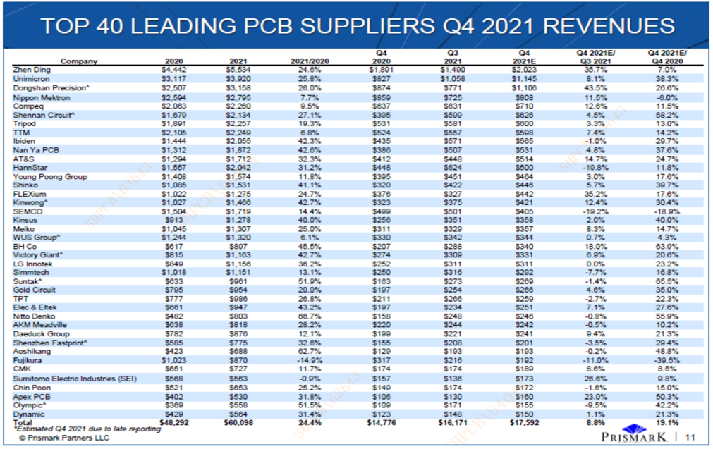 星空科技位列2021年Q4全球40强PCB企业第22名